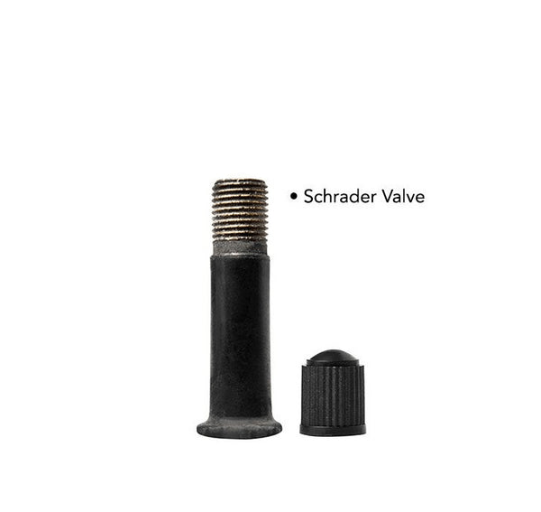Schrader Valve: Also known as American valves and sometimes abbreviated to AV or SV are the most common valve type and are widely used in various applications, including cars, motorcycles, and bicycles. Schrader valves are larger and sturdier than Presta valves, featuring a spring-loaded valve mechanism and a central pin that is depressed to inflate and deflate the tire. They resemble the valves found on car tires and are easily recognizable by their wider diameter.