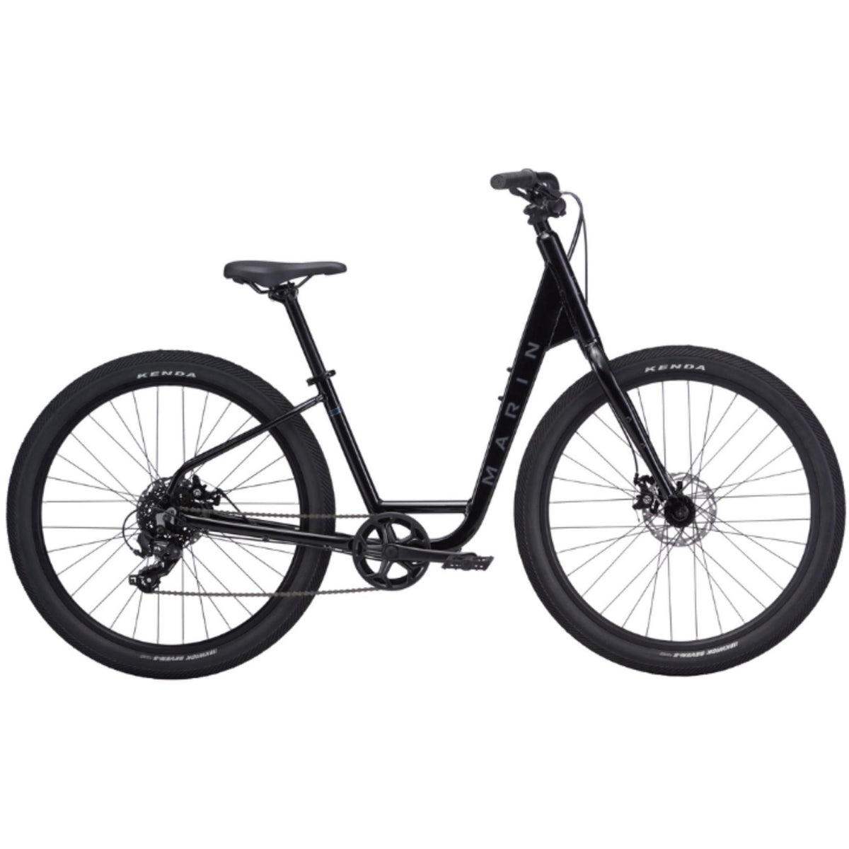 The Marin Stinson 1 LS Hybrid Bike blends a low-step, comfort-focused aluminum frame with wide puncture-resistant tyres and practical mounts for fenders and racks, delivering a smooth, stable ride for city commutes and relaxed weekend outings. Mechanical disc brakes and a Shimano 7-speed drivetrain provide dependable stopping power and easy gear changes, while the ergonomic cockpit and kickstand enhance everyday usability.