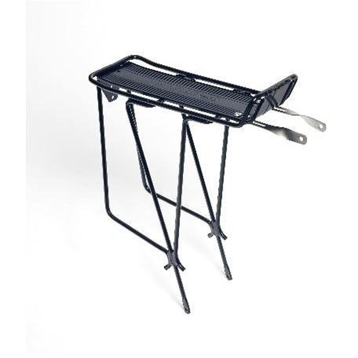 Rear rack compatible with 26-inch and 700c wheel bikes equipped with V-brakes. It mounts to the frame using the provided bolts and can carry up to 25kg. Constructed from alloy, it is resistant to rust.