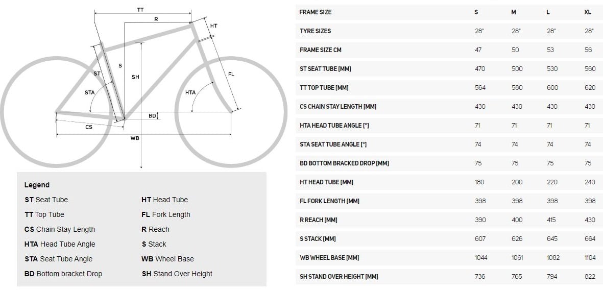 | Weight: | 9.35 kg (weighed with 700C wheels and at frame size M, without pedals) |