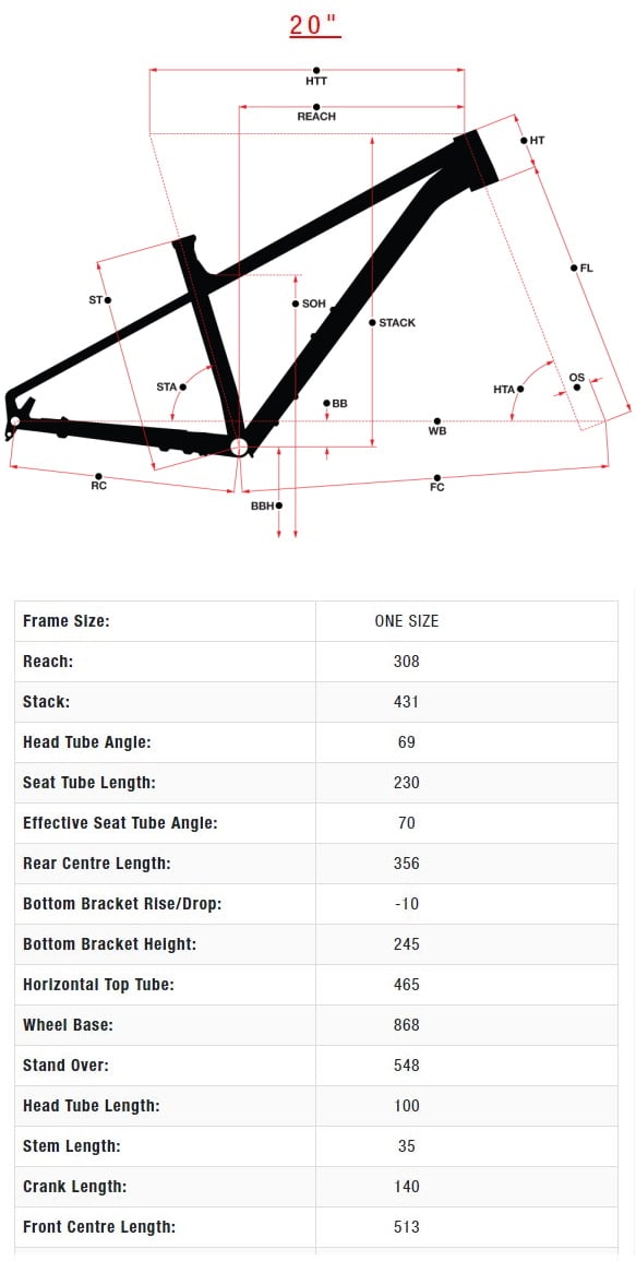 | Frame: | Storm 20” Aluminum Frame |
