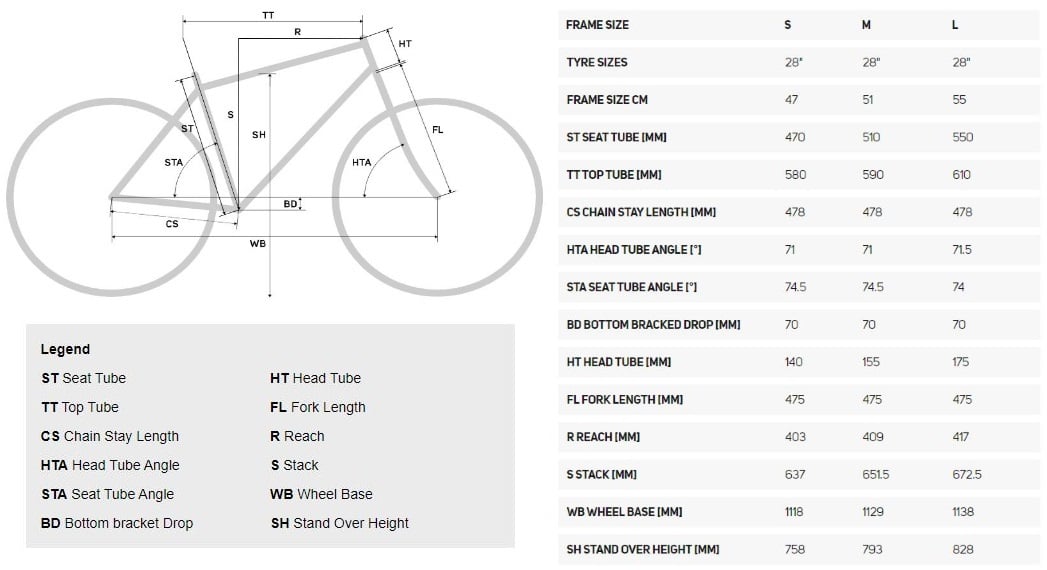 | Weight: | 25.11 kg weighed with 700C wheels and at frame size M |