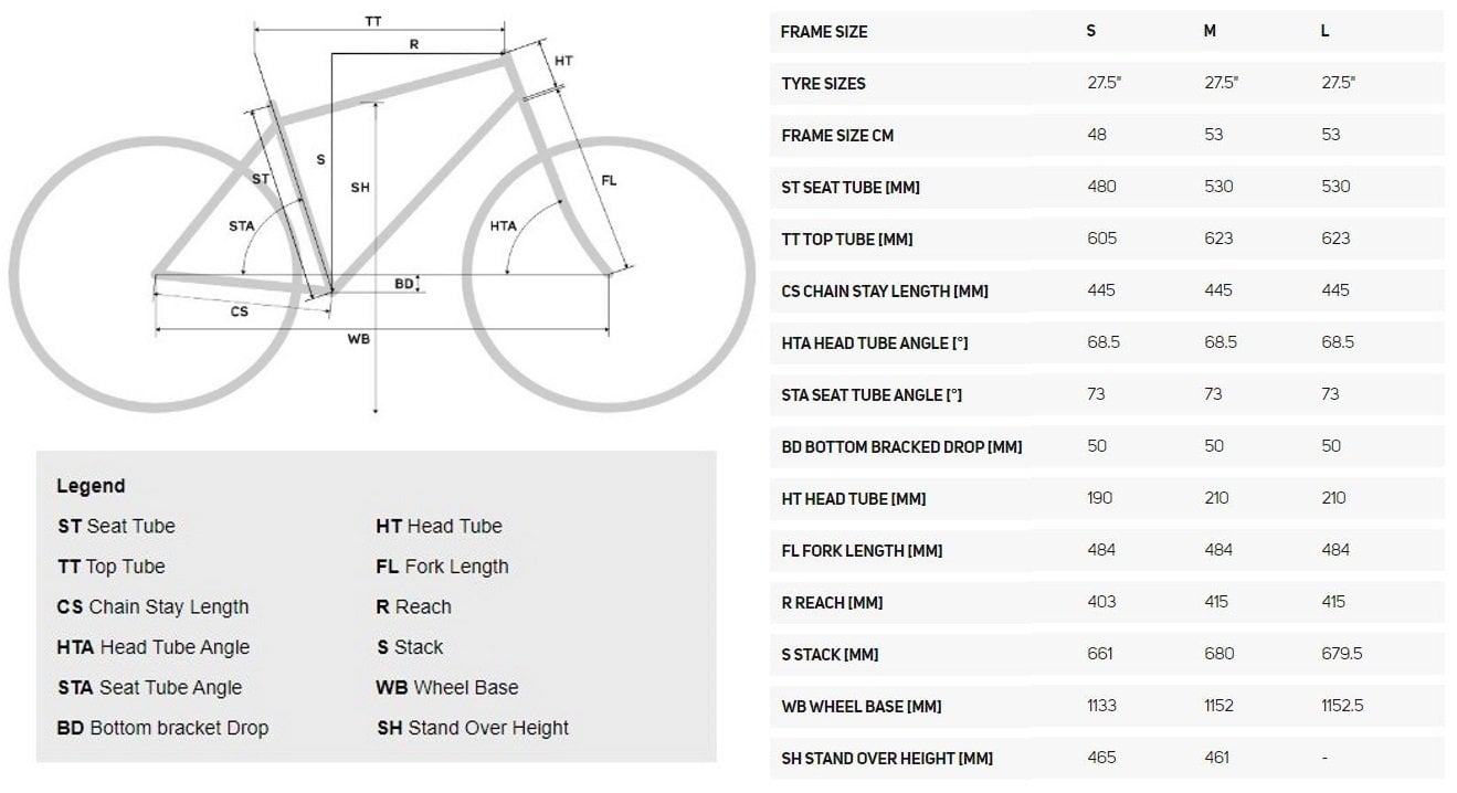 | Tyre front: | Maxxis Crossmark II 27.5x2.25" wire reflecting line |