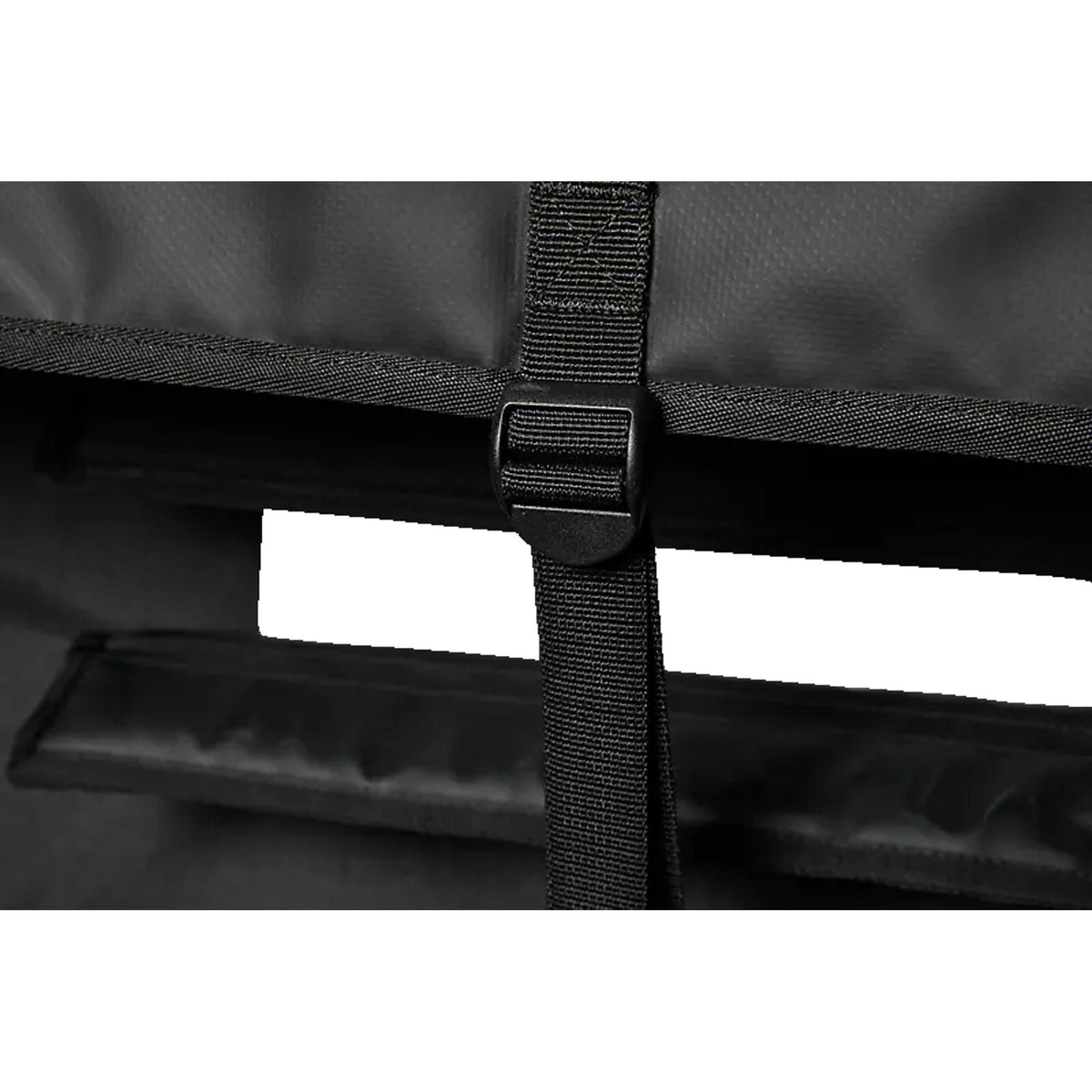 The Fox 5-Bike Tailgate Pad Black is designed to make transporting your bikes easy and secure. With its premium padded protection, it safeguards both your tailgate and bikes from dings and scratches during transit. The pad features a folding flap that allows access to the tailgate handle and rearview camera, ensuring convenience without compromising on security. Equipped with five sturdy webbing straps, it provides a reliable attachment to your truck, making it perfect for shuttling your crew to the top of the trail. Constructed from durable tarpaulin fabric, this tailgate pad is built to withstand the elements and provide long-lasting performance.
