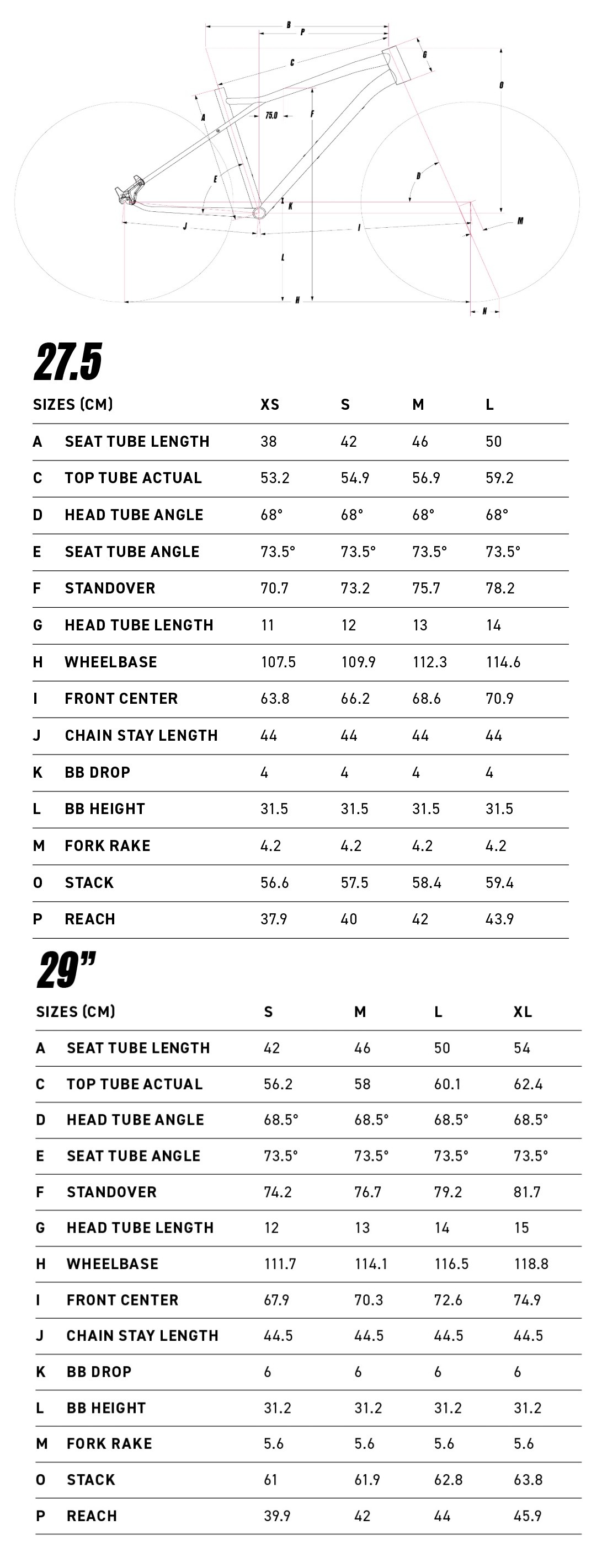 | Wheel size: | 29" / 27.5" (Varies by Frame Size) |
