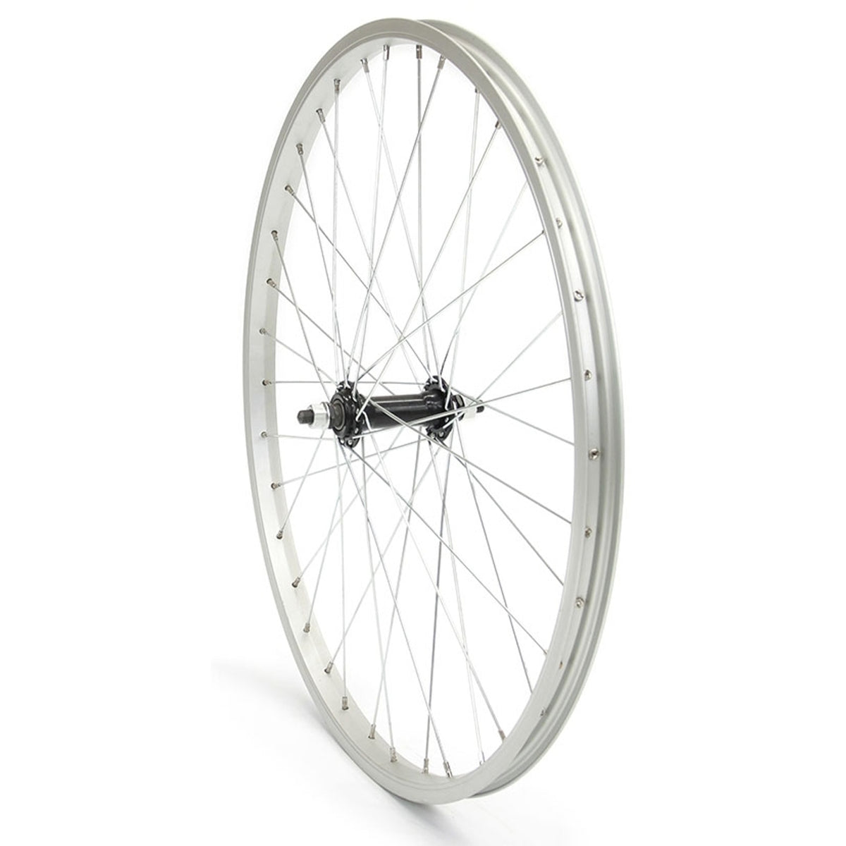 The On Track Alloy Front Wheel 24 x 1.50" Silver is designed for mountain biking enthusiasts seeking a reliable and lightweight option. Featuring a durable alloy rim and a quick-release alloy hub, this wheel ensures easy installation and removal while providing excellent performance on various terrains. Its sleek silver finish adds a modern touch, making it a perfect fit for any 24" mountain bike frame. Upgrade your ride with this high-quality front wheel that combines functionality and style.