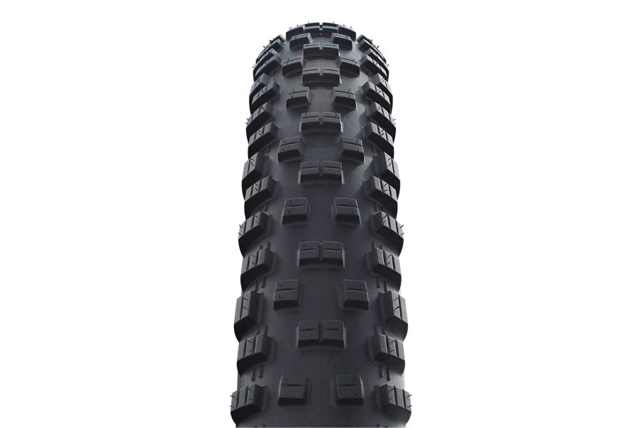 TOP CHOICE FOR ROOKIES. Proven XC and All Mountain tread design. Just right for rougher trails. Perfect for the front wheel in combination with (e.g.) Rapid Rob. Available in the wheel sizes 26“, 27.5“ and 29“ as well as the super-wide 60 mm version (27.5“ x 2.35“). Shoulder studs for great lateral traction.