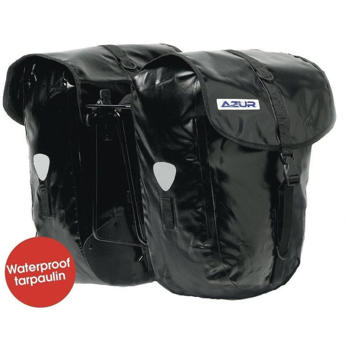 The Azur Tarpaulin Pannier Set offers waterproof protection for your belongings while cycling. Constructed from durable 500D Tarpaulin, these bags effectively repel water. They feature a straightforward fold and strap closure, along with quick-release carrier clips for ease of use. With a total storage capacity of 54 liters, they provide ample space for most riders' storage needs.