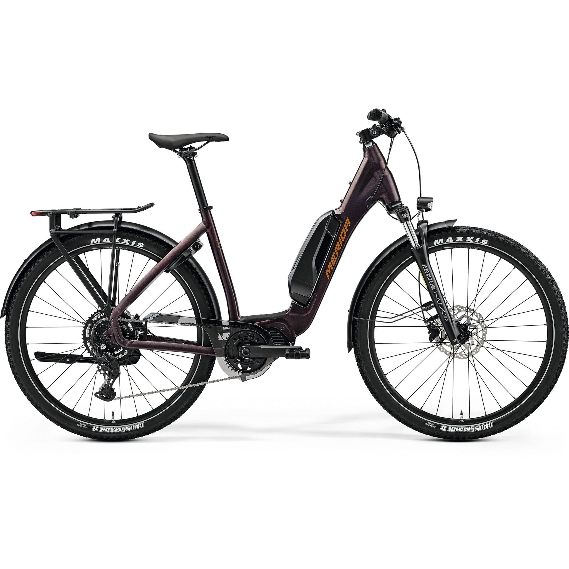 The Merida Espresso CC 400 EQ SE Electric Hybrid Bike is designed for those who seek a versatile and comfortable ride. Equipped with a powerful Shimano EP6 motor delivering 85Nm of torque, it ensures a smooth and efficient ride across various terrains. The 504Wh Shimano battery provides ample power for extended journeys, making it ideal for commuting or leisurely rides. Its step-through frame offers easy accessibility, while the hydraulic disc brakes ensure reliable stopping power. With 27.5" wheels and a Suntour fork providing 80mm of front travel, this bike offers a balanced and comfortable ride.